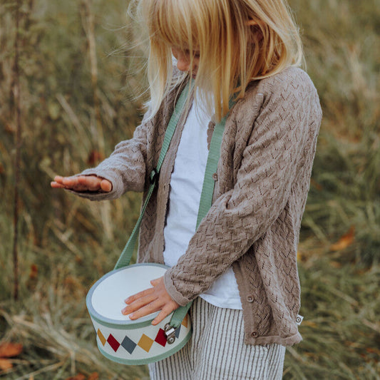 Houten Drum Harlekin – Muziekspeelgoed met drumsticks