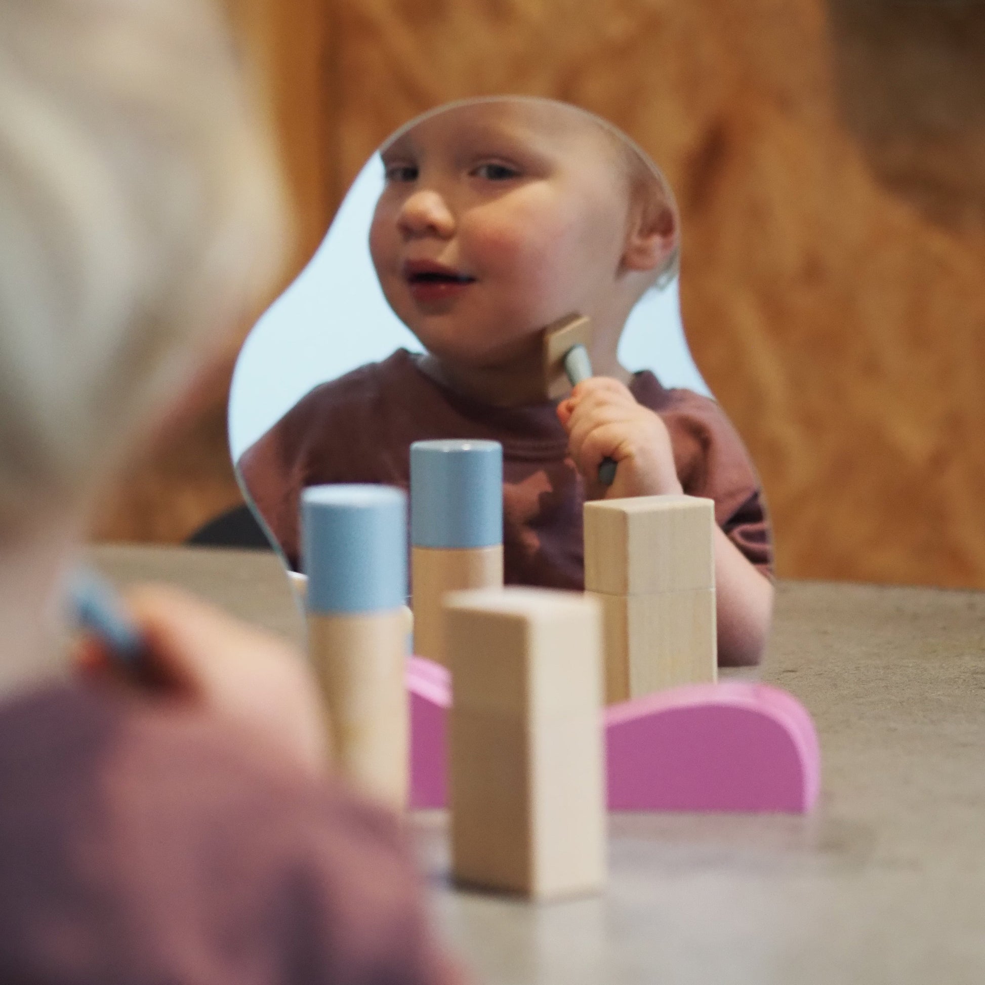 Met de Houten Scheerset ontdekken kinderen spelenderwijs de wereld van verzorging en rollenspel. Deze complete set maakt het mogelijk om te doen alsof ze zich scheren met een mes, scheermes of elektrische trimmer – allemaal zonder pijn natuurlijk.
